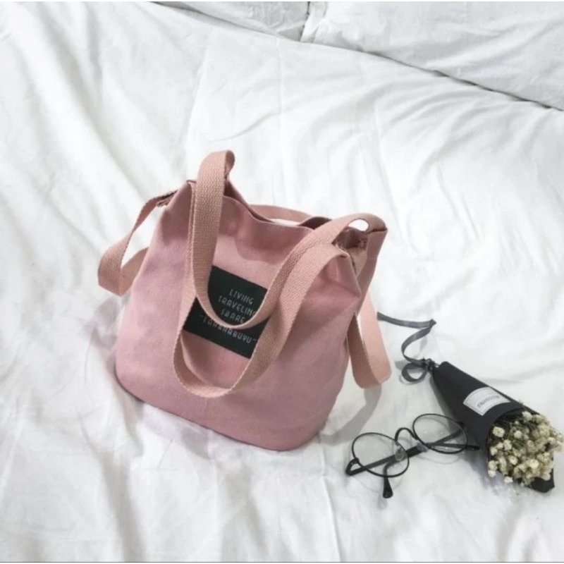 KOREAN LIVING TRAVEL STYLE Tas Slempang Mini Import ya.. bukan Lokal.. dengan bahan Kanvas, cocok untuk dibawa jalan santai ataupun sebagai tas hijab.