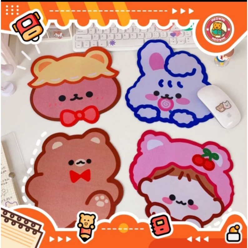 Korean Mouse Pad Karakter Lucu / Mousepad Alas Mouse / Aksesoris Komputer Karakter Fluffy Bear Bunny Anti Slip Beruang Kelinci
