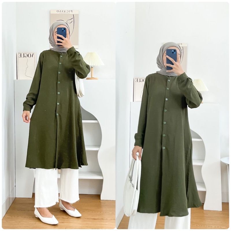 Detail KOREAN LONG TUNIK / TUNIK KOREAN / TUNIK WANITA FULL KANCING