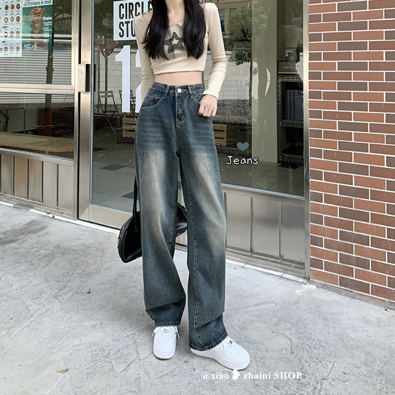 Detail Korean Style Celana Jeans Wanita High Waist Straight Pants Boyfriend Jeans