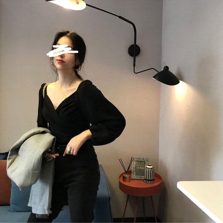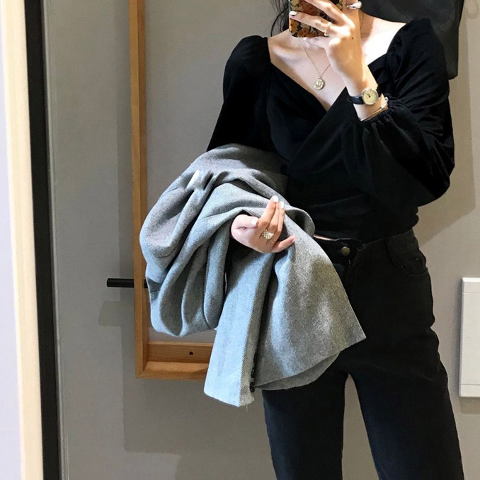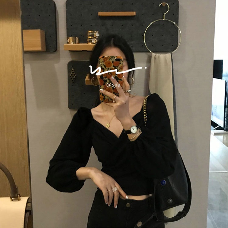 Detail Korean style Retro kaos wanita atasan wanita Lengan Panjang baju atasan wanita