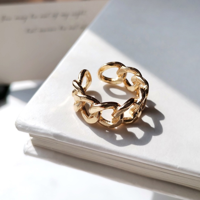 Detail Korean Style Simple Metal Chain Ring Hollow Open Adjustable Ring Women Rings
