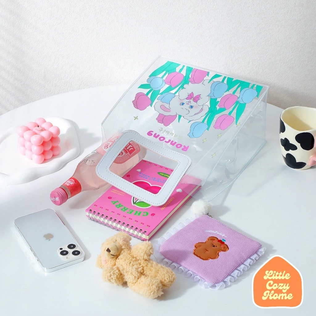 Tas Wanita > Tote Bag > Tote Bag > KOREAN STYLE TOTE BAG / Tas Jinjing Transparan Handbag Ala Korea Remaja Piknik Cantik / Tas untuk Kursus Anak Les Sekolah Motif Karakter Premium Cute Lucu Imut Perempuan Cewek
