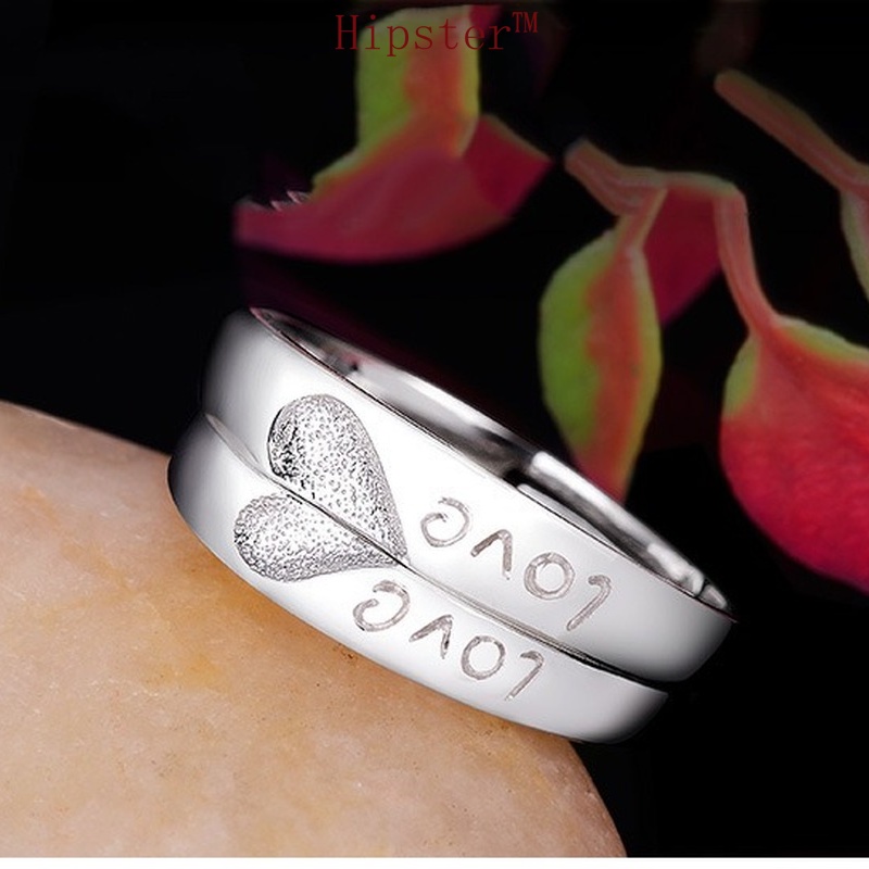 Detail Korean Style Unique and Romantic Carved Love Adjustable Couple Ring