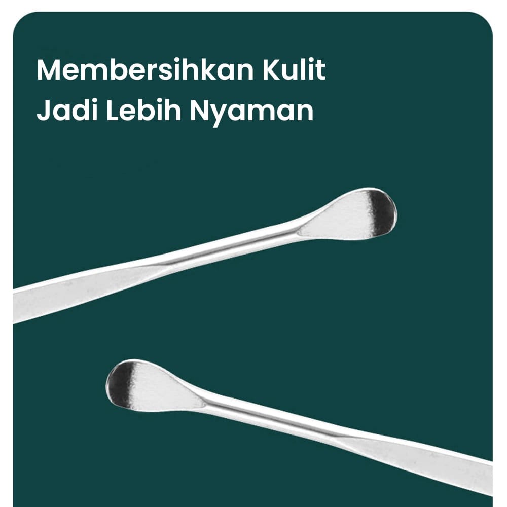 Detail korek kuping 6in1 plus pouch stainless ear pick 6in1 set pembersih telinga isi 6 tas kulit