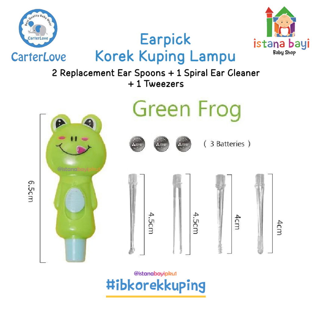 Sering kesulitan ketika membersihkan kotoran telinga anak tercinta karena kurangnya pencahayaan? Dengan alat ini Anda tidak perlu lagi kesulitan. Earpick ini sudah dilengkapi dengan sinar LED yang dapat memberi penerangan di dalam telinga. * Memudahkan Anda dalam mengambil kotoran telinga dengan bantuan cahaya terang pada ujung earpick * Earpick dapat diganti-ganti sesuai kebutuhan (termasuk 2 earpick dengan ukuran berbeda dan satu tweezer untuk penjepit) * Penampilan elegan yang didesain khusus untuk sesuai dengan telinga manusia