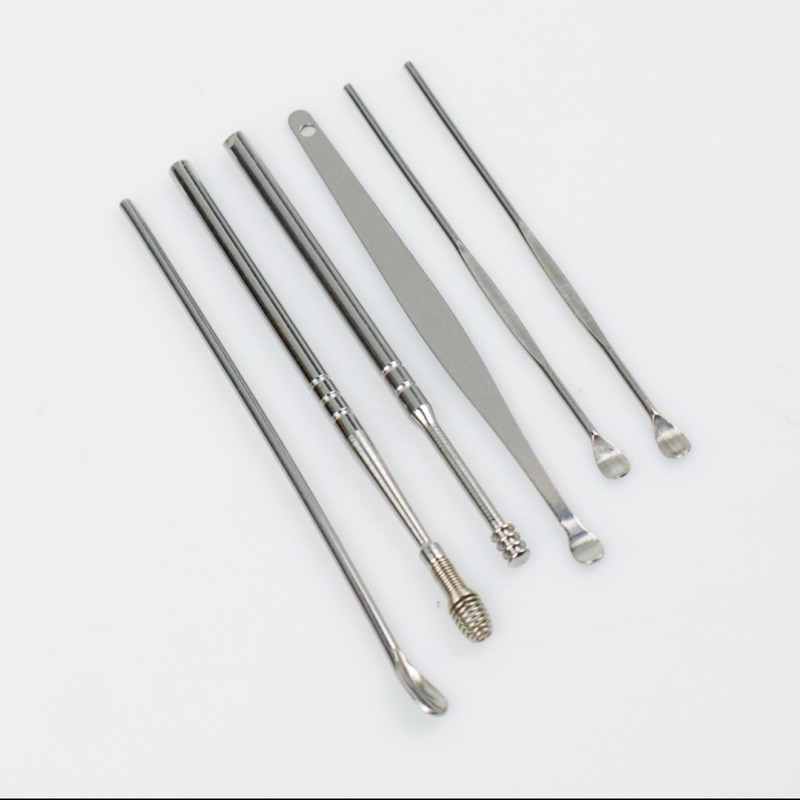 Set pemberih telinga ini hadir dengan 6 macam pembersih dengan ujung kepala yang berbeda-beda. Berbagai jenis bentuk kepala membuat pembersih telinga ini sangat lengkap digunakan untuk berbagai kondisi. Terbuat dari bahan stainless steel sehingga tidak akan berkarat dan dapat digunakan dalam waktu lama. Fitur 6 Kepala Pembersih 6 kepala pembersih telinga ini hadir dengan beragam macam bentuk. Ada yang berbentuk seperti sekop, kepala melingkar dan menyerupai per pegas, membuat masing-masing kepala tersebut menyesuaikan kondisi telinga. Bahan Besi Stainless Steel Set pembersih ini terbuat dari material stainless steel berkualitas yang dijamin kuat, tidak mudah karat, serta awet untuk penggunaan jangka panjang. Wadah Penyimpanan Terdapat wadah penyimpanan yang berukuran 10.9 cm yang dapat menyimpan keenam pembersih telinga. Setelah menggunakan, harap pembersih telinga dibersihkan dan direndam dengan air panas sebelum disimpan agar lebih steril.