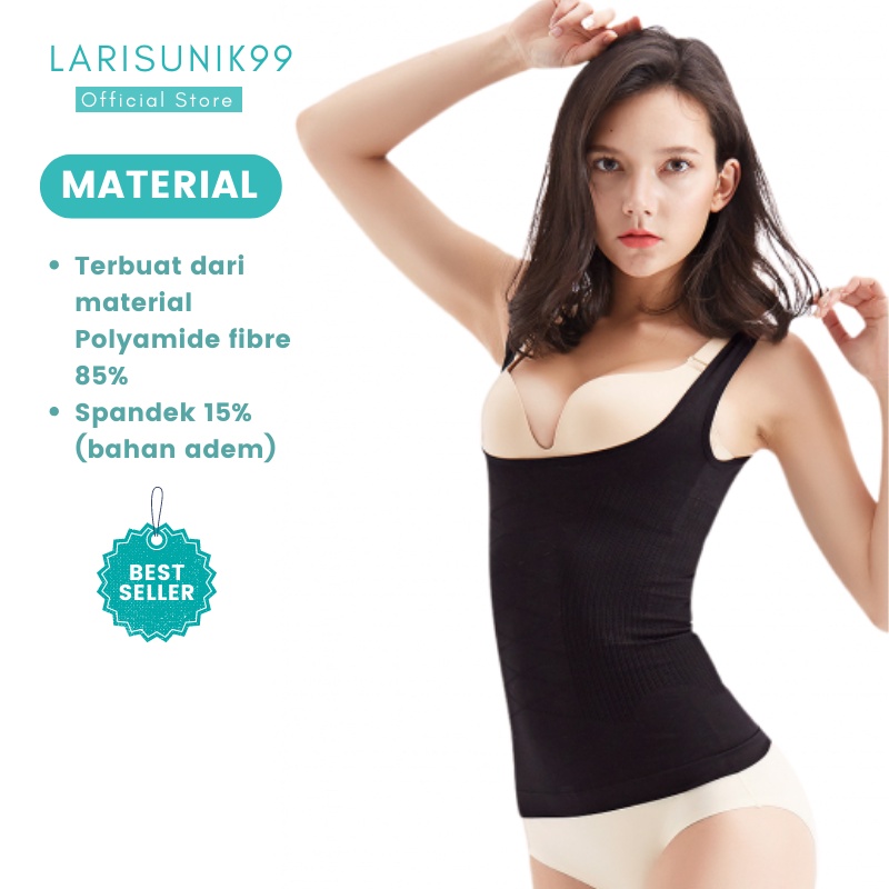 Kelebihan dari Body SLimmer : β Terbuat dari material Polyamide fibre 85% dan Spandek 15% (bahan adem) β Bahannya lentur nyaman dipakai, tidak bikin sesak, dan tidak panas. β Menggunakan korset setiap hari secara rutin sangat efektif untuk membentuk tubuh yang ideal. β Menjaga posisi tulang belakang dan membuat perut tidak mampu menampung terlalu banyak makanan. β Membantu membentuk lekukan pinggang dan dapat mengurangi lemak berlipat di bagian belakang tubuh. β Bisa mengangkat bokong yang kendur menjadi lebih kencang dan Indah.