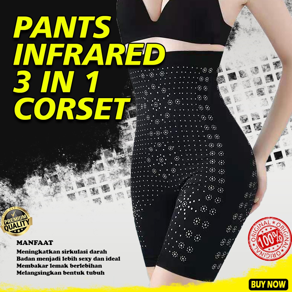 INFRARED PANTS 3 IN 1 CORSET jauh yang mulus dapat meningkatkan sirkulasi darah, mengaktifkan sel, dan mempercepat metabolisme. Membakar lemak berlebihan dan membentuk tubuh yang ideal dan menarik, selain itu juga dapat menghilangkan rasa letih pada tubuh dengan cepat karena dilengkapi dengan infra merah. Dengan bahan yang lentur sehingga dapat membuat dipakai di ukuran tubuh apa saja.