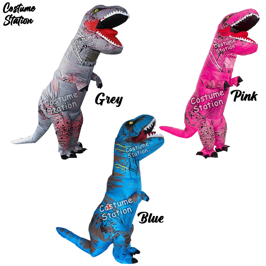Kostum Trex untuk Dewasa. Bahan 100% Polyester. Model pompa isi angin. Pilih warna di Varian Produk.