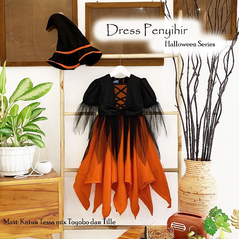 KOSTUM PENYIHIR FREE TOPI /KOSTUM HALLOWEN/ HALLOWEN COSTUME/DRESS PENYIHIR /BAJU PENYIHIR ANAK DAN DEWASA