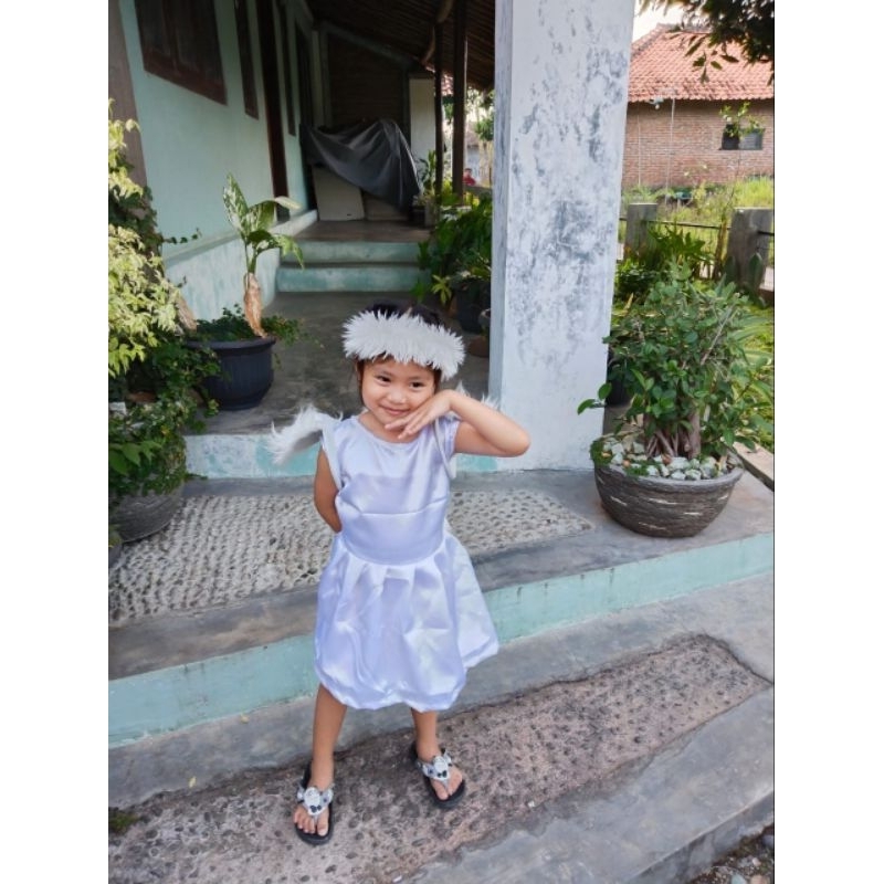 kostum peri /kostum bidadari anak. kain satin, bulu sintetik. utk anak TK. bagian : dress peri, sayap, mahkota, tongkat peri. M utk usia 3 - 5 THN L utk usia 6-7 THN XL utk usia 8-9 thn