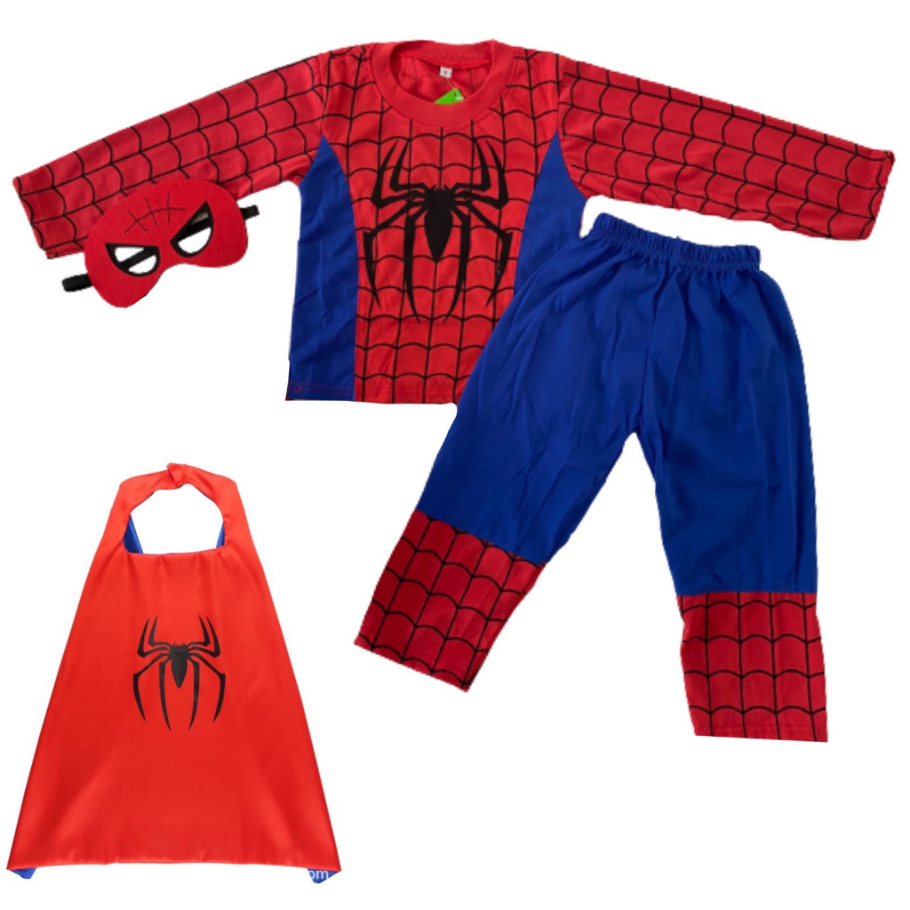 Kostum Spidermen Dengan Topeng Dan JubahKostum Spidermen Dengan Topeng Dan Jubah