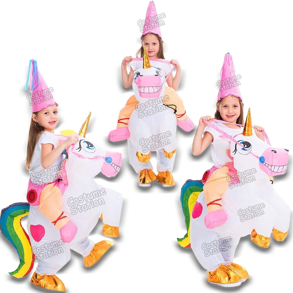 Kostum Unicorn Back Ride / Costume Kuda Poni Pegasus Inflatable pompa angin anak