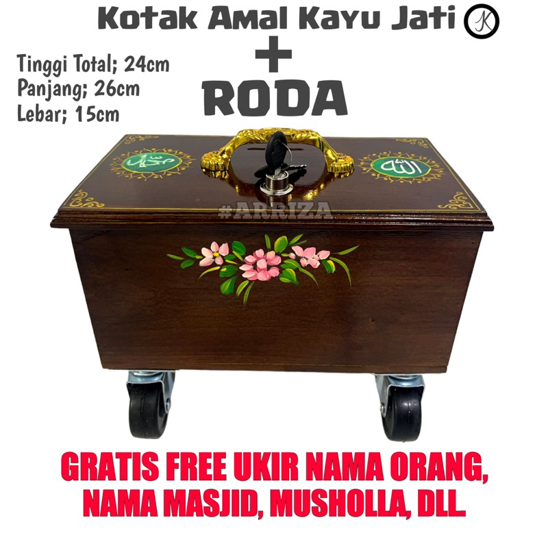 Perlengkapan Rumah > Organizer Rumah > Box, Tas, & Keranjang Penyimpanan > KOTAK AMAL + RODA / KOTAK AMAL RODA KAYU JATI KOTAK INFAQ + RODA / CELENGAN / KOTAK DONASI + RODA / TEMPAT PENYIMPANAN UANG