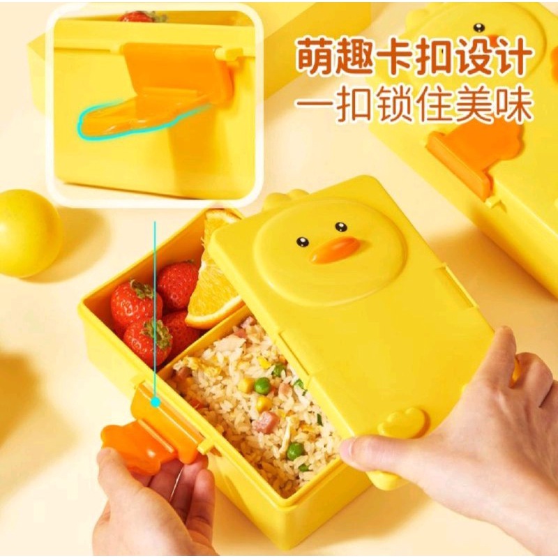 Detail KOTAK BEKAL MAKAN ANAK - LUNCH BOX ANAK 2 SEKAT MOTIF BEBEK KUNING