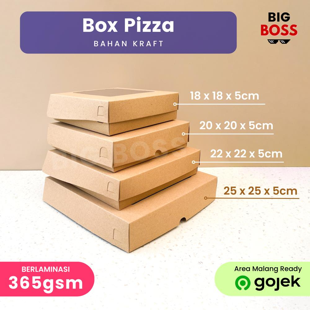 Box Pizza 18x18x5 Panjang : 18cm Lebar : 18cm Tinggi : 5cm Finishing : Laminasi