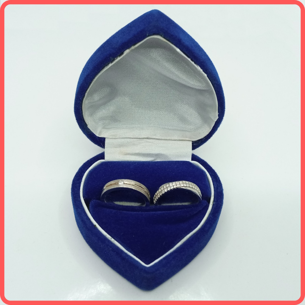 Detail Kotak Cincin Tunangan Couple Bentuk Love Warna Biru