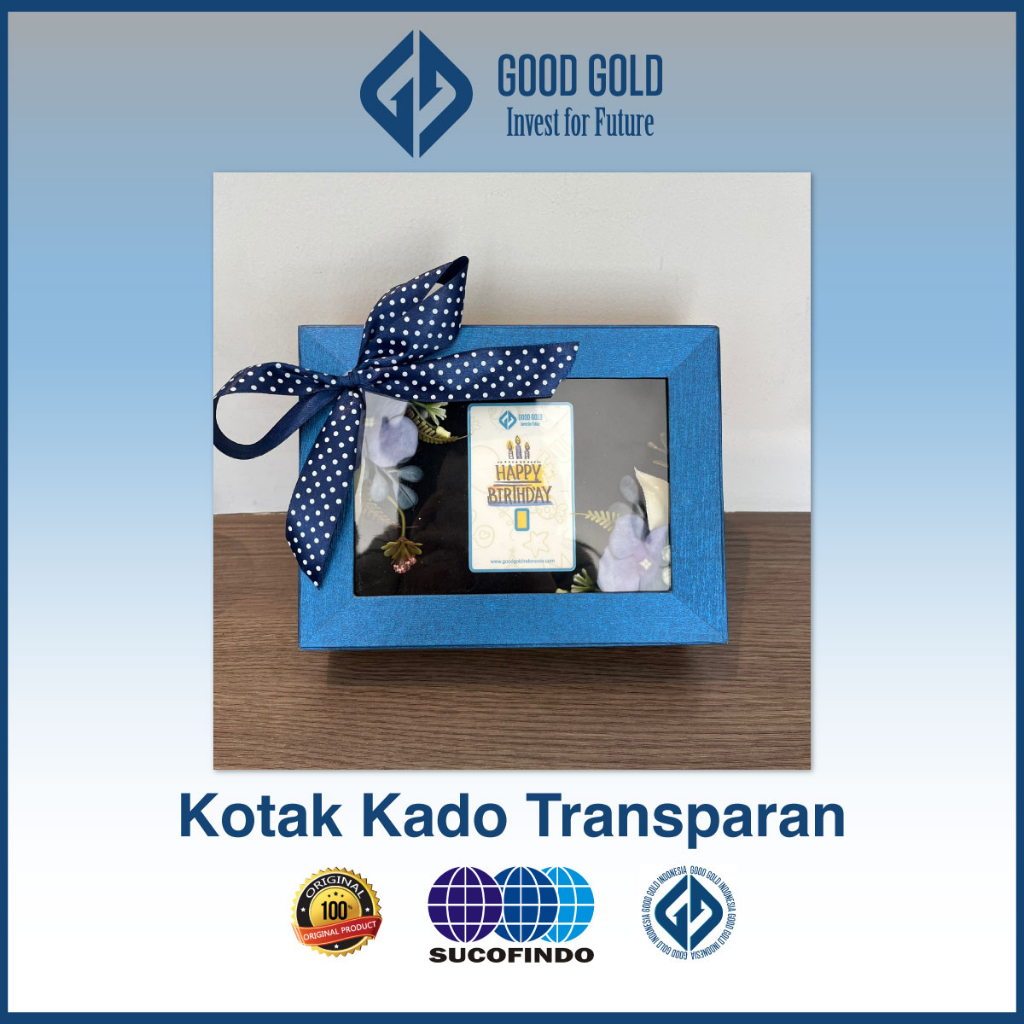 Kotak Kado dengan bagian depan mika transparan -Bahan: Karton hardboxtebal -Ukuran luar box: 20,5cm x 16.5cm x 6.5cm -Ukuran dalam box: 20cm x 15cm -Bagian dalamnya dilapisi kertas art paper -Alas menggunakan kain beludru hitam -Tutup box sudah termasuk pita tersedia warna merah,pink,biru,coklat