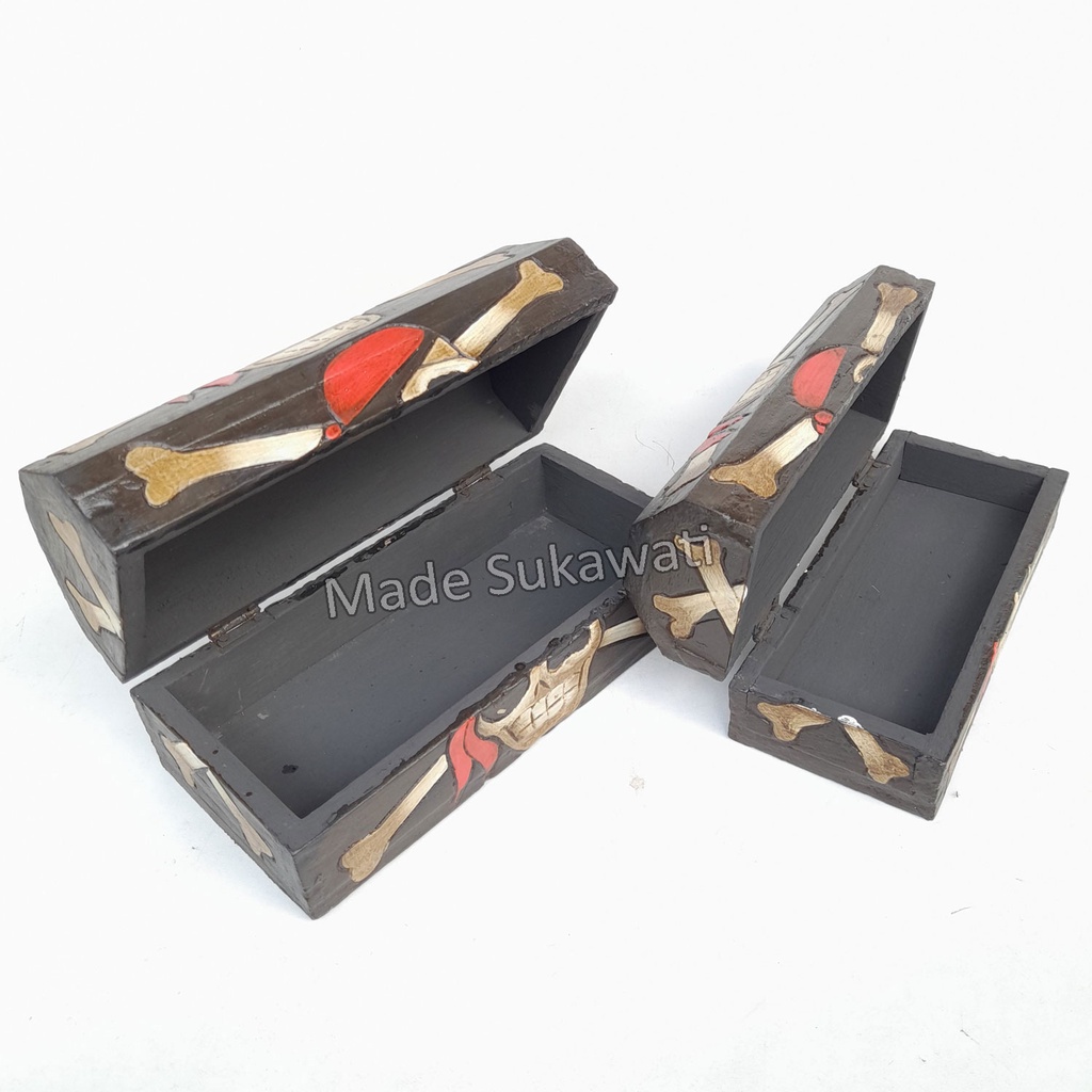 Kerajinan kotak Model keranda mayat jenazah,motif tengkorak skull, Bahan kayu dengan variasi ukiran tengkorak, Reday pilihan Ukuran: S panjang 22cm,lebar 9cm,tinggi 9cm, M panjang 25cm,lebar 12cm,tinggi 11cm, Mari cintai produk kerajinan UMKM lokal dengan produk berkualitas dan harga terjangkau. MadeSukawati informasi warna dan pertanyaan silahkan bisa chat/pesan/diskusi, Terimakasih.