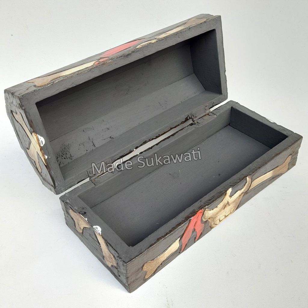 Detail Kotak kayu Keranda mayat jenazah tengkorak kerajinan handmade bali