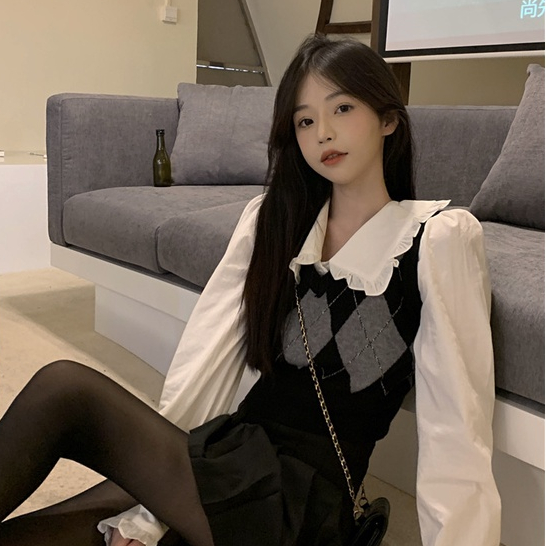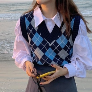 Detail Kotak Kotak Vest Rajut Wanita Korean Style Gaya Jalanan/vest ketupat/Sweater Magra