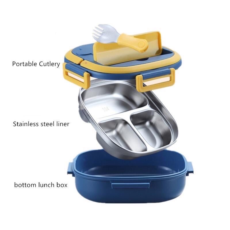 Detail KOTAK MAKAN ANAK TEDEMEI 304 STAINLESS ANTI PANAS BPA FREE 3 SEKAT