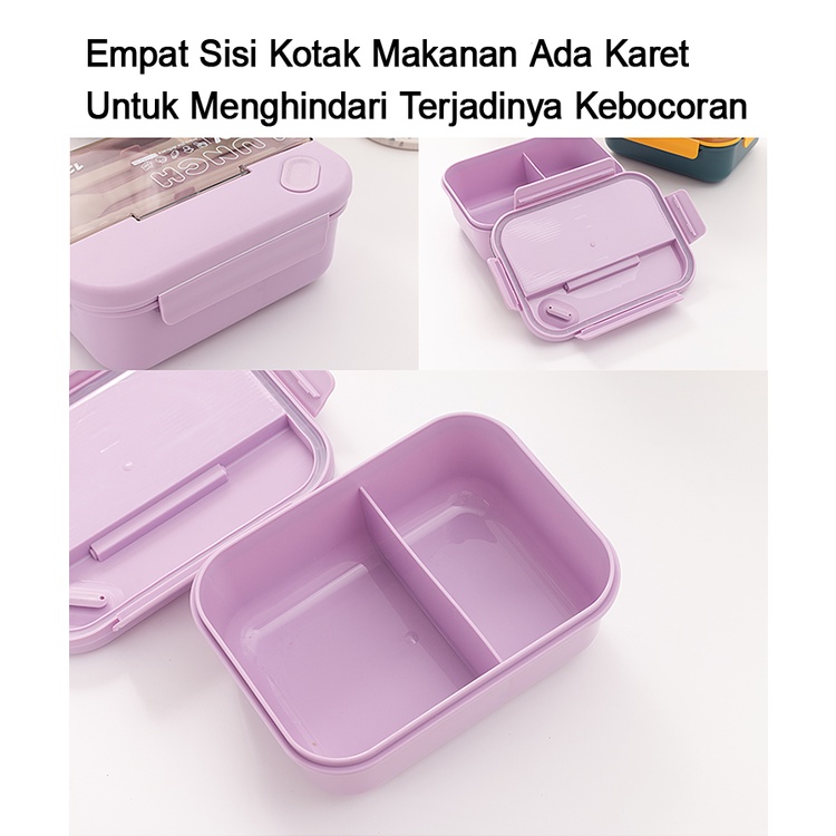 Detail Kotak Makan Anti Tumpah 1250ml Tempat Bekal 2 Sekat BPA Free Dengan Alat Makan Set