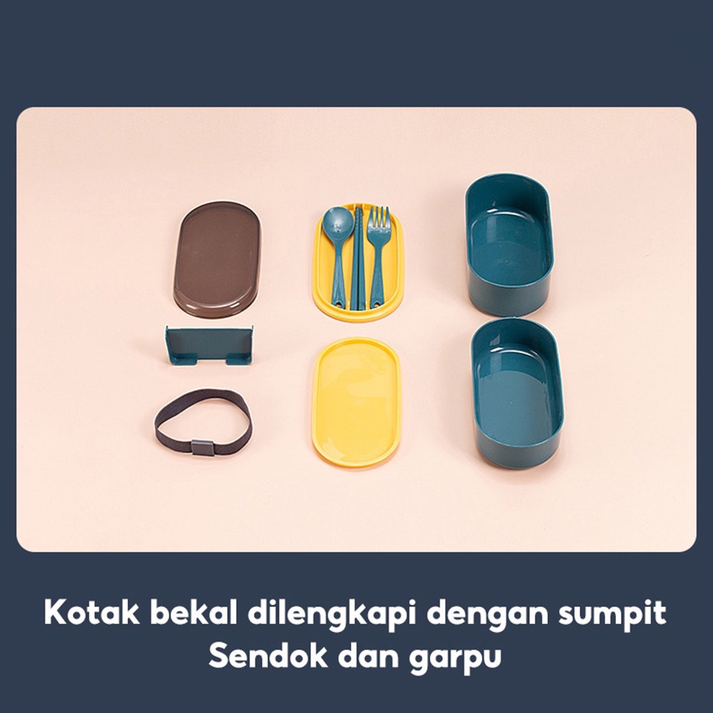 Kotak Makan Bekal Makan Set 700ml Tempat Bekal Makan Portable Lunch Box Free Sendok dan Sumpit Bekal Murah