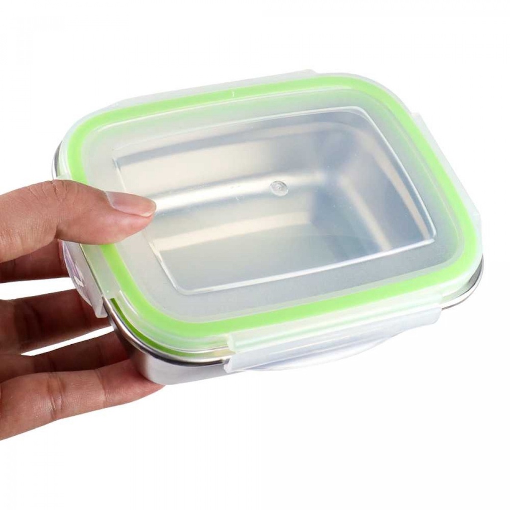 Anti Tumpah Pada bagian tutupnya terbuat dari bahan plastik ABS yang berguna menjaga kotak makan dengan metode lock n lock sehingga tidak akan tumpah dan terlepas dari susunan pada saat dibawa sehingga isi kotak akan tetap utuh tidak tercecer.