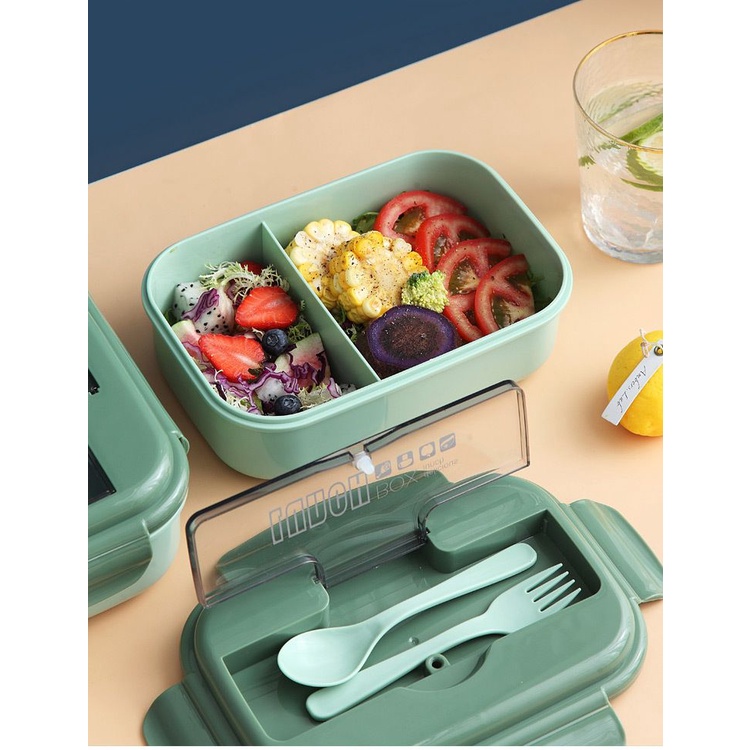 * Bahan PP5 Food Grade BPA Free 1000ml * Polipropilen (PP5) lebih kuat dan ringan dengan daya tembus uap yang rendah, ketahanan yang baik terhadap lemak, stabil terhadap suhu tinggi dan cukup mengkilap * 2 Sekat Kompartemen * Dilengkapi Pembatas PE Pada Kompartemen Bawah * Termasuk Sendok Dan Garpu * Tahan Terhadap Suhu Tinggi Sehingga Dapat Dimasukkan Ke Dalam Microwave * Seal Karet Anti Tumpah Keluar * Dimensi 17cm x 17cm x 7cm
