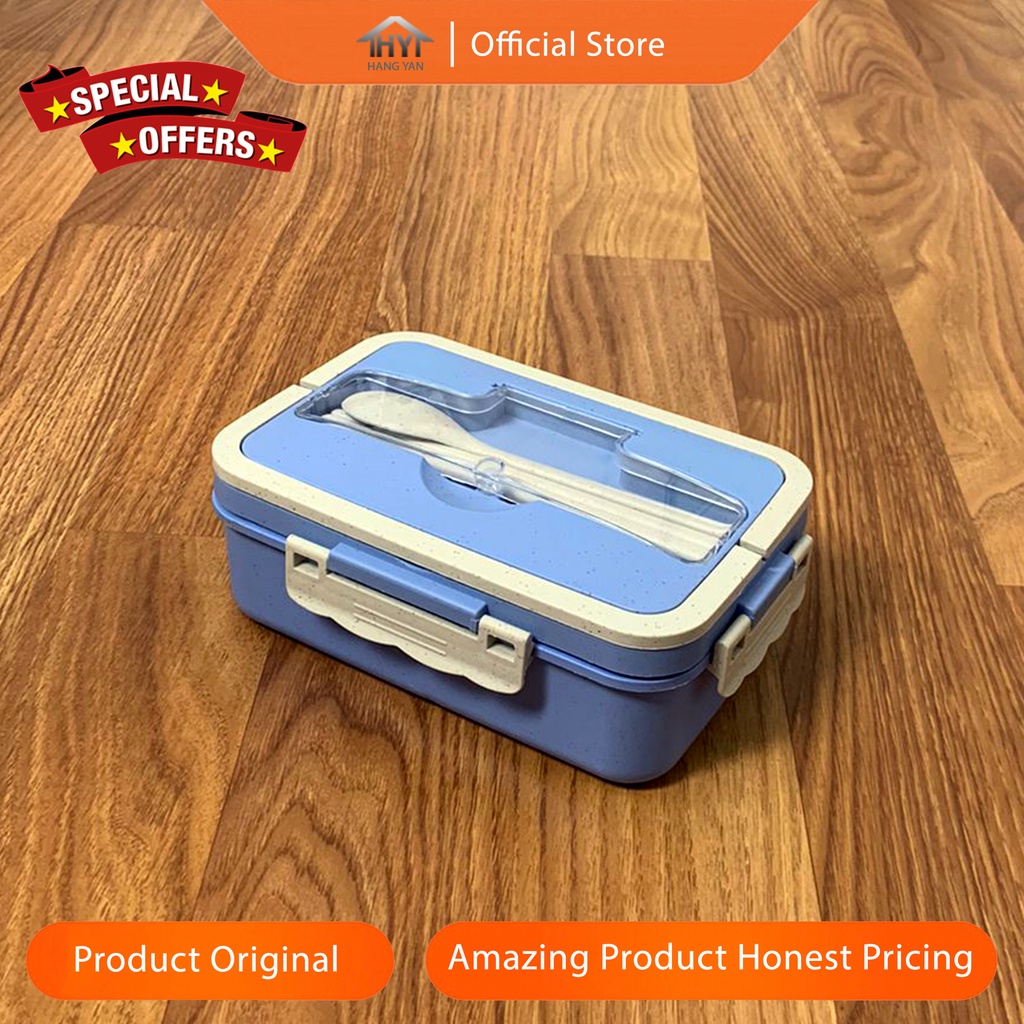 Perlengkapan Rumah > Peralatan Dapur > Tempat Penyimpanan Makanan > Kotak makan Set Lunch Box Kotak Bekal Tempat Makan Jerami 1000ML 4 IN 1 Free Sendok Sumpit