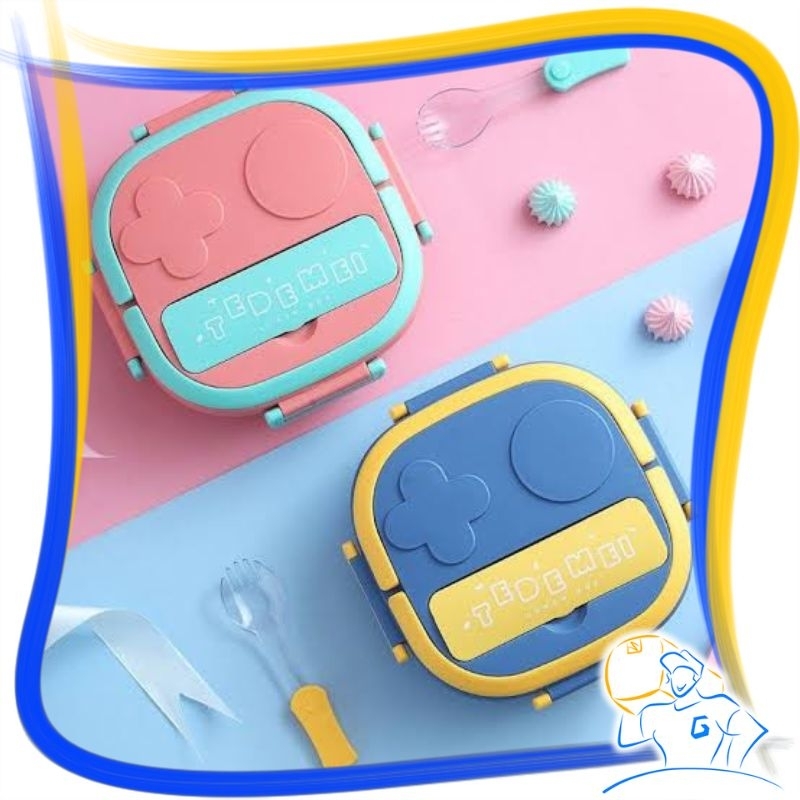 Kotak Makanan Tedemei 6123 Bento Lunch Box Set Free Sendok Garpu BPA Free