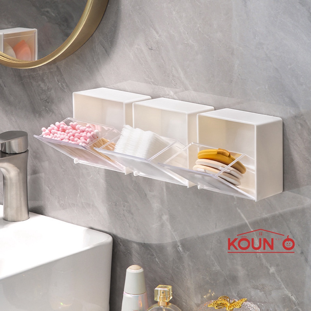 Perlengkapan Rumah > Perlengkapan Rumah Lainnya > Kotak Make Up Kosmetik Benda Kecil Model Tempel Dinding Serbaguna Kotak Penyimpanan Kapas Tempat Cotton Bud Organizer Serbaguna Mini Anti Air
