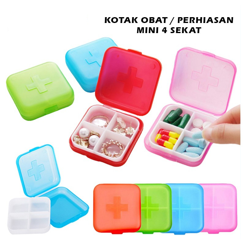 Detail Kotak Obat Mini 4 Sekat Pill Box Portable Tempat Aksesoris Perhiasan