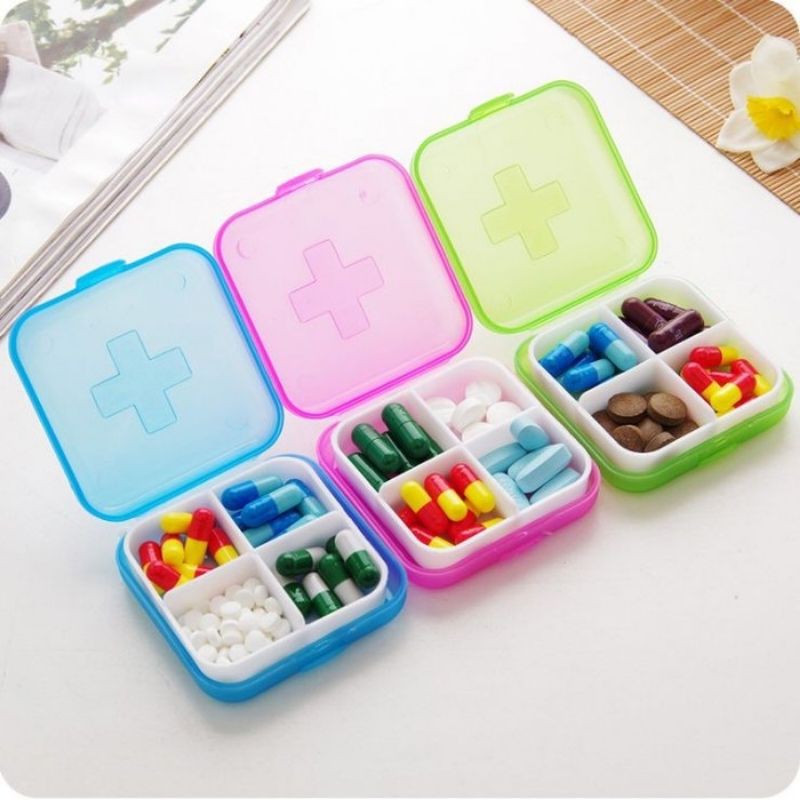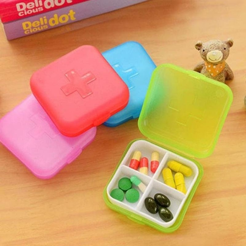 Menyimpan obat / suplemen anda saat berpergian. Terdapat 4 sekatan yang berukuran 3x3cm yang dapat digunakan untuk menyimpan obat/suplemen atau barang lainnya seperti anting-anting. Berat: 25gr. Tersedia 5 warna. jika warna yg dipilih kosong, maka kami kirim sesuai stock yg ada..kami info via chat