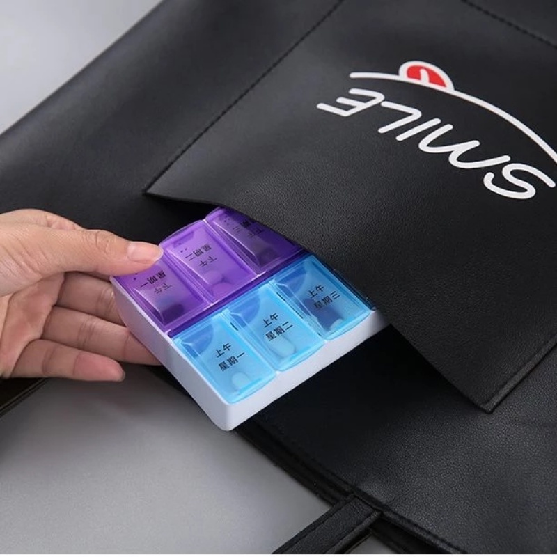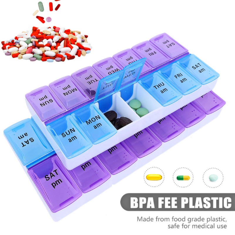 Kotak Organizer Obat Pil / Tablet / Vitamin / Ikan / Minyak Portable 14 Sekat Untuk 7 Hari