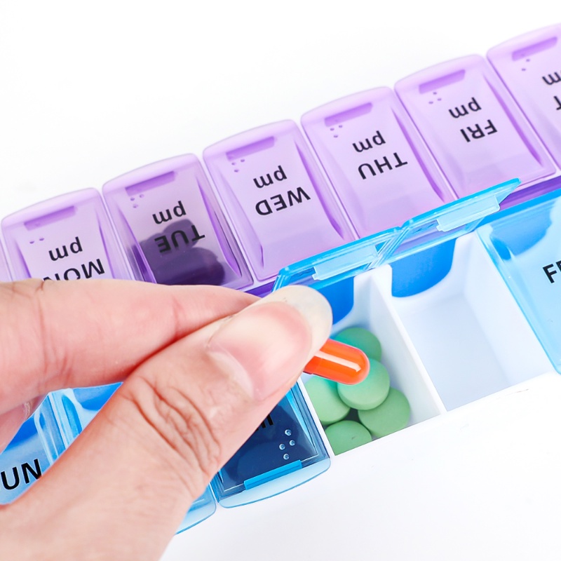 Perlengkapan Rumah > Organizer Rumah > Box, Tas, & Keranjang Penyimpanan > Kotak Organizer Obat Pil / Tablet / Vitamin / Ikan / Minyak Portable 14 Sekat Untuk 7 Hari