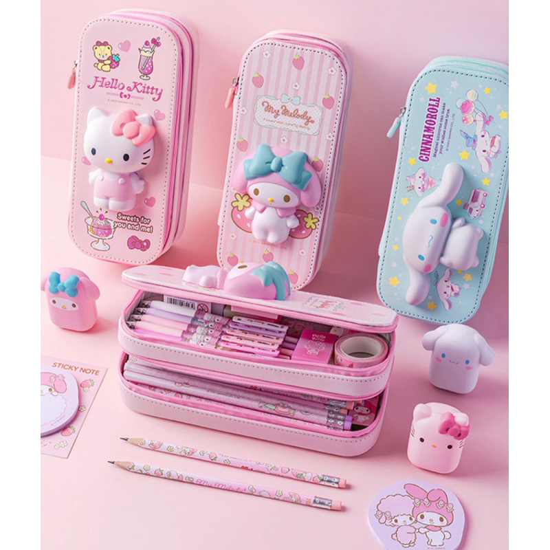 Kotak Pensil Anak Squishy Motif Kuromi Melody Kitty Cinnamoroll Good Quality