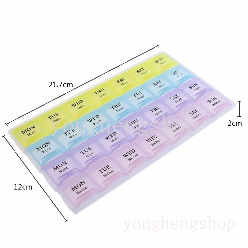 Perlengkapan Rumah > Organizer Rumah > Box, Tas, & Keranjang Penyimpanan > Kotak Penyimpanan Obat Pil Tablet 28 Grids 7 Hari Mingguan Untuk Perawatan Kesehatan