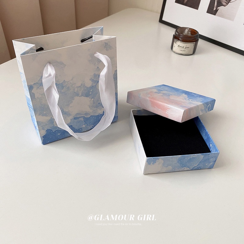 Ukuran: 8.8*8.8*3 cm Kotak Perhiasan, 11*5.8*12 cm Tas Perhiasan Bahan: Kertas Keras: Kertas Keras