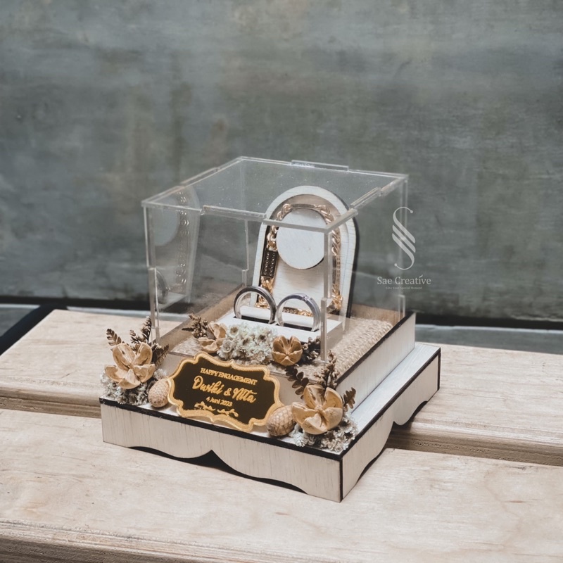 (READY STOCK) Kotak Perhiasan Cincin dan Gelang / Ringbox Cincin dan Gelang Rustic Kayu Akrilik + Custom Nama