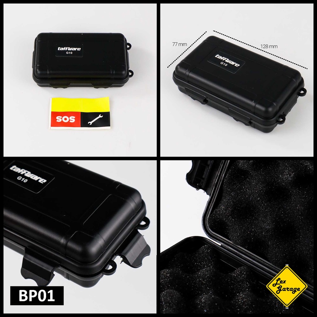 BP01 & BP02 - Terbuat dari plastik ABS yang kuat dan dilengkapi dengan busa yang tebal sehingga barang Anda aman dan terlindungi dari benturan - Empat klip pengunci pada tiga sisi agar kotak tertutup rapat sehingga barang Anda aman dari debu dan air - Desain yang sederhana sehingga nyaman dibawa bepergian - Ukuran Luar BP01: 128 x 77 x 38mm BP02: 180 x 120 x 45mm
