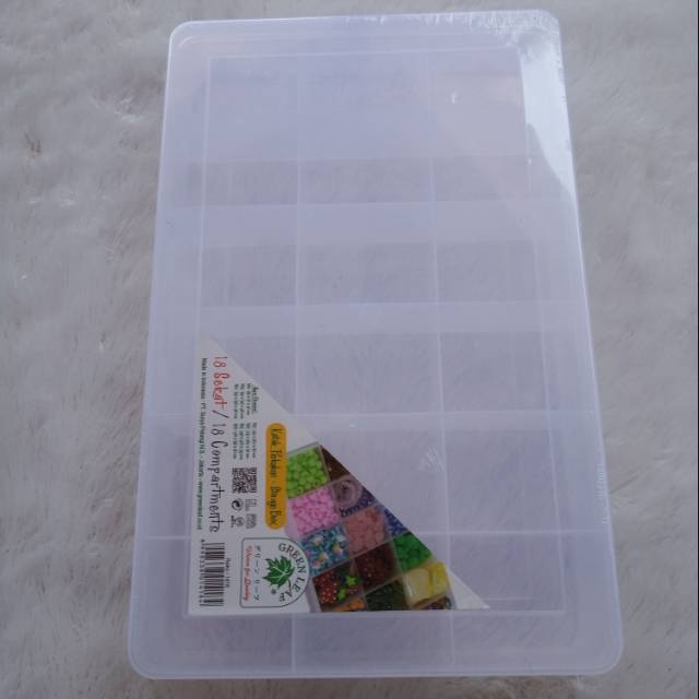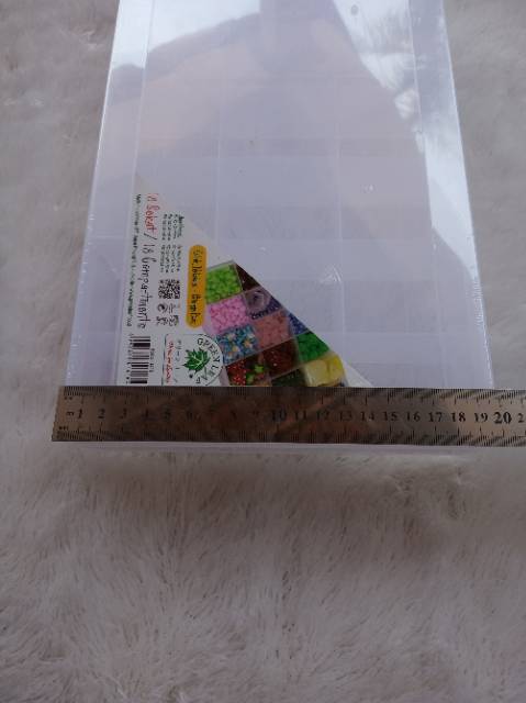 Kotak perkakas Reiko 18 sekat Panjang -+30 cm*20 cm*5 cm Warna putih bening Sekat paten Setiap sekat ukuran -+6,5*5 cm