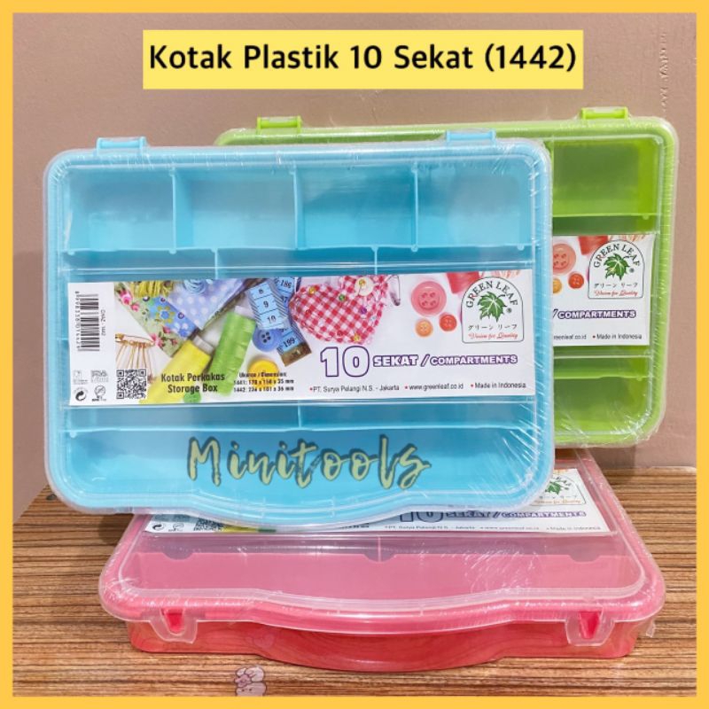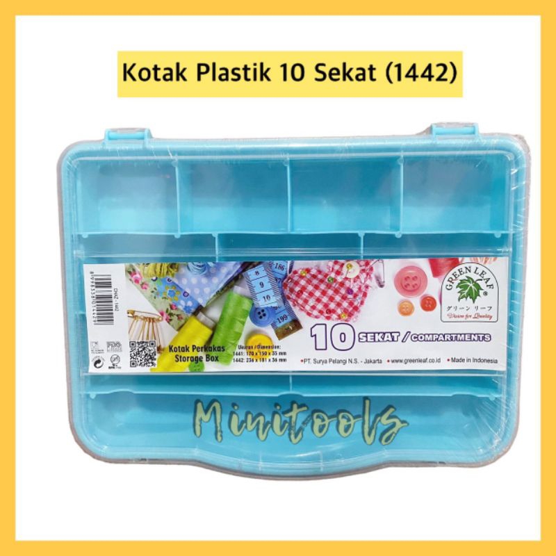 Green Leaf 1442 Kotak Perkakas Chaz 10 Sekat / Tempat Aksesoris Berbahan dasar plastik berkualitas baik Bisa anda gunakan untuk penyimpanan pernak pernik jahit, aksesoris anda maupun kebutuhan anda lainnya Dilengkapi dengan pembatas yang tidak bisa di lepas pasang Masing masing sisi nya memiliki 10 sekat Warna bening sehingga anda mudah untuk melihat isi yang ada di dalam kotak tersebut