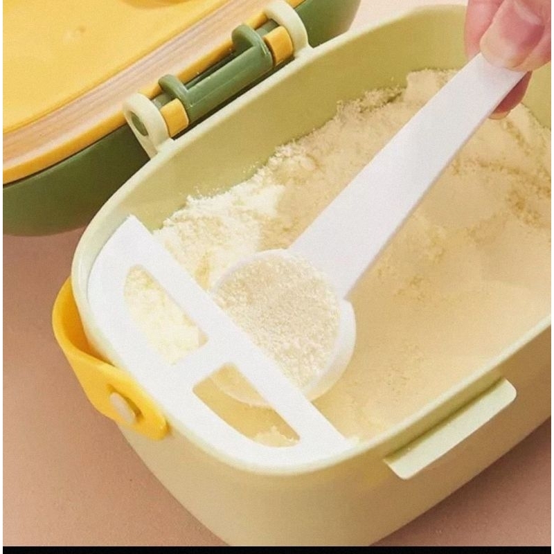 Fitur produk : Terdapat sendok jadi tidak repot lagi bawa sendok susu Double lid (ANTI TUMPAH) meski dibolak balik sekalipun High quality plastik (BPA FREE) yang aman untuk bayi dan anak Terdapat tempat khusus sendok jadi sendok tidak tercampur aduk dengan susu