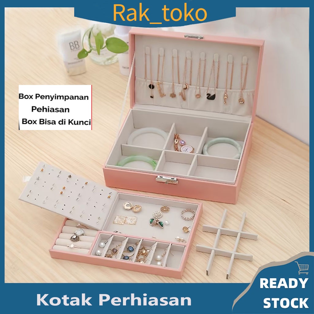 Kotak Tempat Perhiasan Travel Jewelry Box Penyimpanan Anting Kalung Gelang Cincin Emas Portable