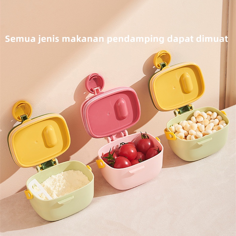 Fitur: - Desain segel ganda untuk mencegah kebocoran - Desain pegangan, mudah dibawa - Kapasitas besar, serbaguna, tidak hanya dapat menampung susu bubuk, tetapi juga buah, makanan ringan