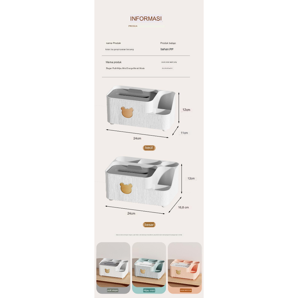 Perlengkapan Rumah > Organizer Rumah > Tempat Tisu > Kotak Tisu Beruang dengan kotak slot penyimpanan remote pensil alat tulis alat makeup wadah penyimpanan tissue serbaguna ruang tamu kerja meja rias storage lucu pink blue white putih cewek