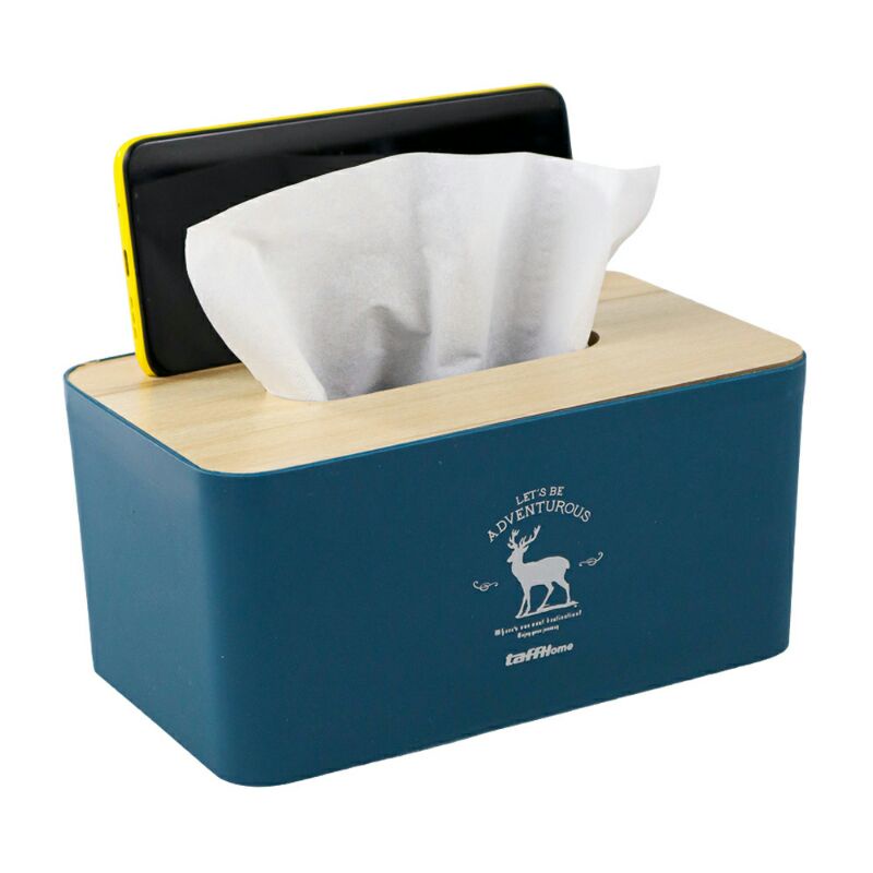 Kotak tisu ini memiliki desain modern dan simpel. Sentuhan kayu di bagian atas menambah nilai estetik yang ada di kotak tisu ini. Dari segi fungsi, kotak tisu ini bisa menjadi holder smartphone sehingga lebih fungsional ketimbang kotak tisu pada umumnya.